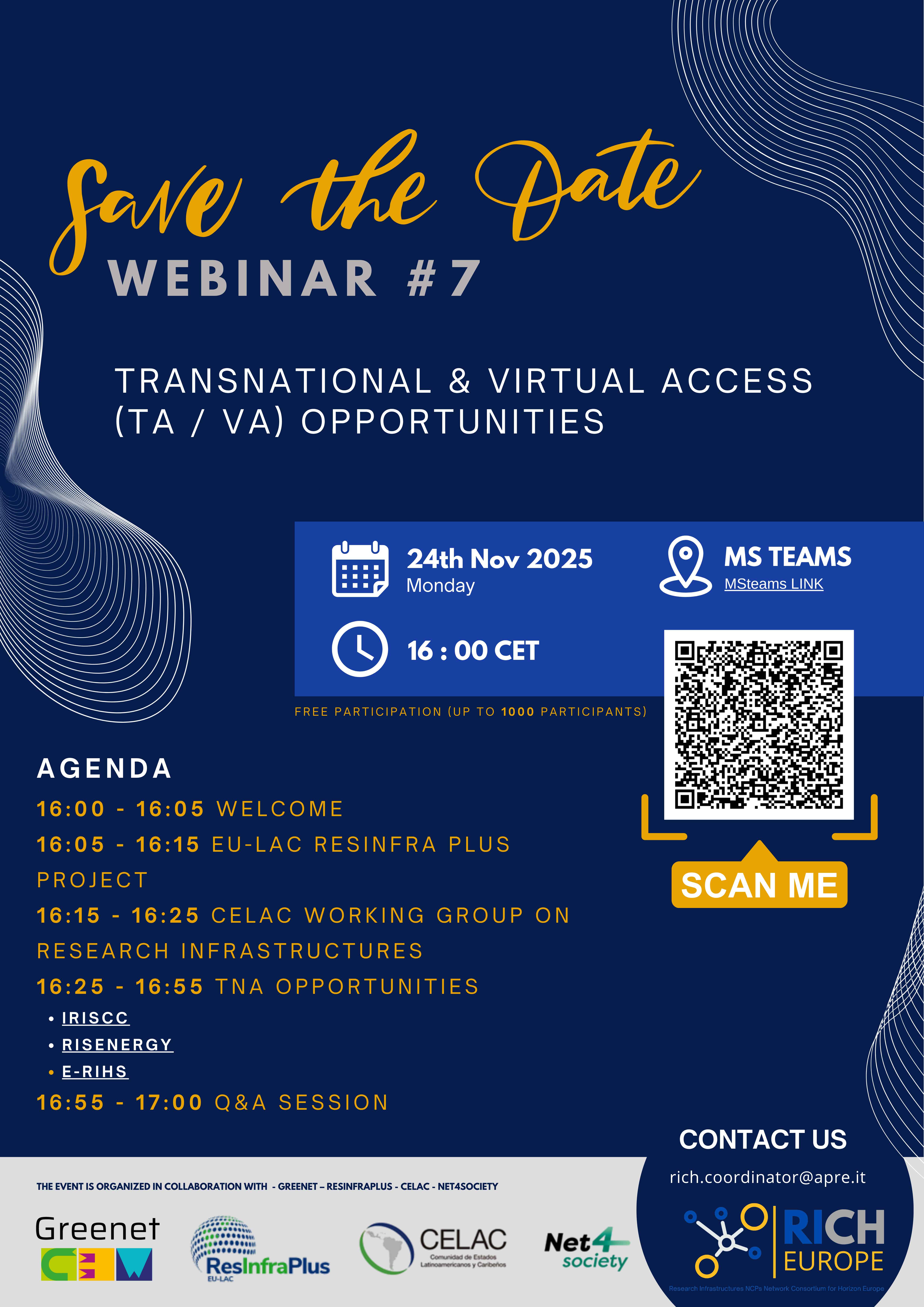 Овај вебинар се реализује у сарадњи са пројектом EU LAC RESINFRA PLUS, као и мрежама CELAC, Net4Society (Кластер 2) и Greenet (Кластер 5). Учешће је бесплатно и отворено за све заинтересоване стране, линк.