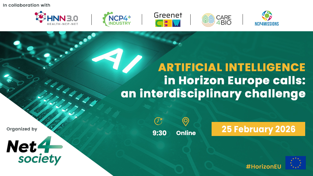Мрежа Net4Society, међународна мрежа националних контакт тачака за Кластер 2 Culture, Creativity and Inclusive Society у програму Horizon Europe, организује AI–SSH/STEM Brokerage Event, који ће бити одржан 25. фебруара 2026. године, од 09:30 до 17:30, у онлајн формату.