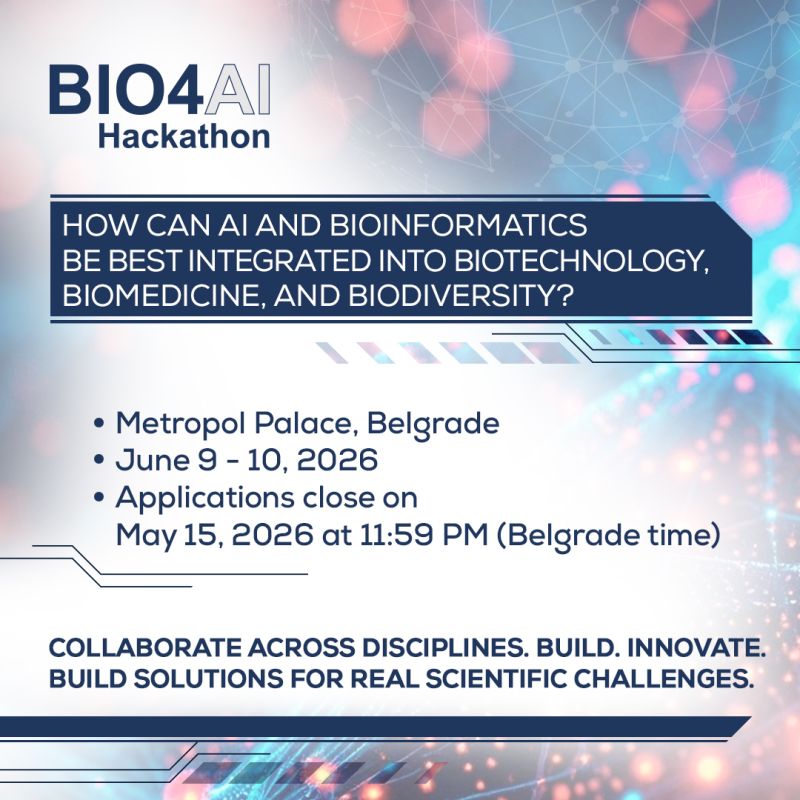 BIO4 poziva na BIO4AI hakaton – novi timski izazov namenjen studentima i istraživačima u ranoj fazi karijere, koji se održava u okviru BelBi 2026 u Beogradu (https://belbi.bg.ac.rs/).